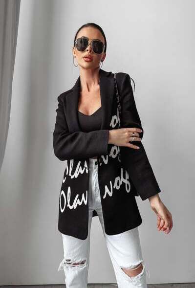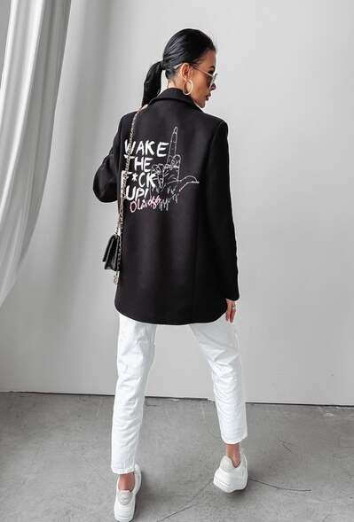 MARYNARKA DAMSKA OLAVOGA OREGA Z NAPISAMI CZARNA