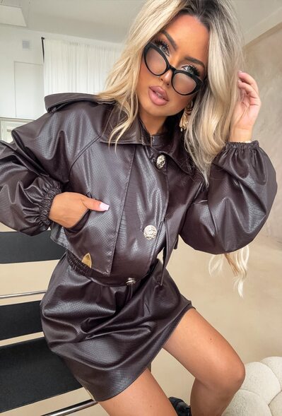 KURTKA EKO SKÓRA COLLEGE SNAKE LA MONNE BRĄZOWA