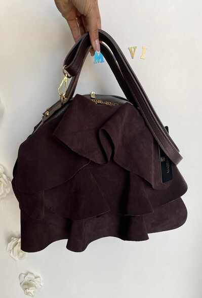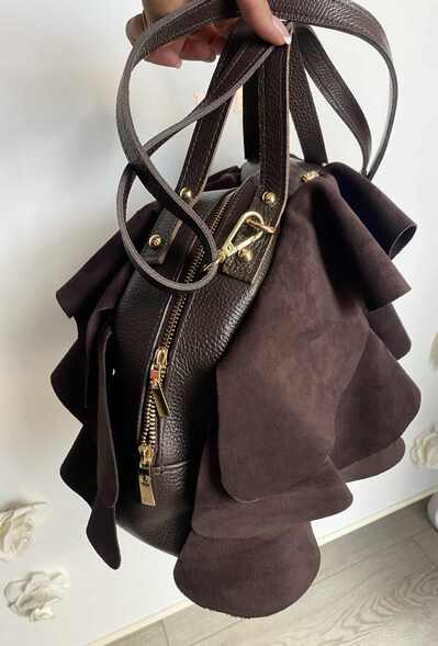 TORBA TOREBKA SHOPPER MASSIMO CONTTI SKÓRA ZAMSZOWA Z FALBANKĄ BRĄZOWA