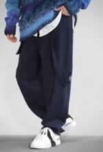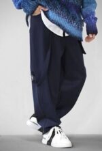 BAWEŁNIANE SPODNIE Z OZDOBNĄ SZELKĄ MINOUU GRANATOWE