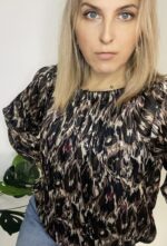 BLUZKA DAMSKA ELEGANCKA WZORZYSTA BLINK Z MIENIĄCĄ NITKĄ BRĄZ