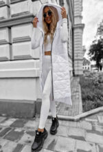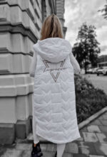 DŁUGA KAMIZELKA INGROSSO MOLLY PIKOWANA Z KAPTUREM BIAŁA