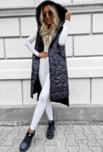 DŁUGA KAMIZELKA INGROSSO MOLLY PIKOWANA Z KAPTUREM CZARNA
