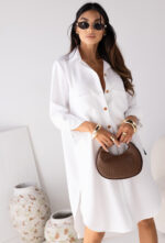 Długa koszula/sukienka Makai od polskiego producenta Miss City Official w kolorze białym to stylowy element garderoby łączący elegancję koszuli z luzem sukienki typu maxi. Model ten charakteryzuje się przewiewnym, naturalnym składem oraz charakterystycznym detalem na plecach.