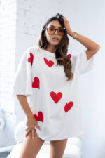 DŁUŻSZY T-SHIRT BLUZKA W SERDUSZKA HEARTBEAT MISS CITY OFFICIAL BIAŁA