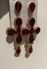 KOLCZYKI DŁUGIE KRZYŻE Z KRYSZTAŁKAMI I SZKIEŁKAMI BORDOWE