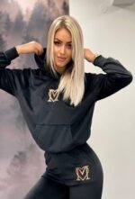 Komplet wykonany z niezwykłą starannością, z bardzo miękkiego i przyjemnego weluru, jakości premium – komplet z bluzą z kapturem i kieszenią typu kangurka.Wyszywane logo firmy na bluzie i spodniach dodaje charakteru.