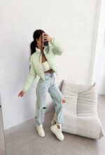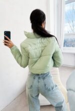 Kurtka pikowana o krótkim kroju. Model z wysoką stójką oraz zapięciem na suwak. Dół wykończony elastycznym ściągaczem. Na przodzie subtelne logowanie, na plecach nadruk z nazwą marki i hasłem.