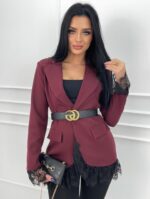 MARYNARKA DAMSKA Z OZDOBNYMI KORONKOWYMI MANKIETAMI BORDO