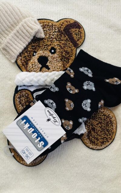 STOPKI SKARPETKI SKARPETY CC LITERKI CZARNE BLACK MIŚ MISIEK TEDDY