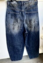 SPODNIE JEANSOWE Z PASKIEM M.SARA BALLONY PRZECIERANE BAWRWIONE NIEBIESKIE