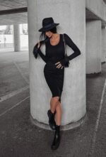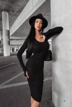 Czarna sukienka dopasowana HOPI marki O’la Voga to prążkowany model o fasonie sweterkowym, który łączy sportową wygodę z kobiecym, dopasowanym krojem.