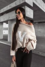 SWETER DAMSKI OVERSIZE OLAVOGA OLV VICI BEŻ