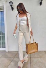 - Stylizacja: Kolor ecru świetnie komponuje się z marynarkami typu oversize, jeansami z wysokim stanem lub eleganckimi spódnicami, tworząc bazę pod stylizacje „old money” lub casual