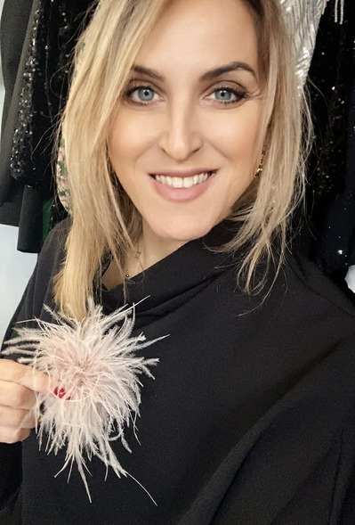 BROSZKA PRZYPINKA Z PIÓR MARABUTA DUŻA BRUDNY RÓŻ