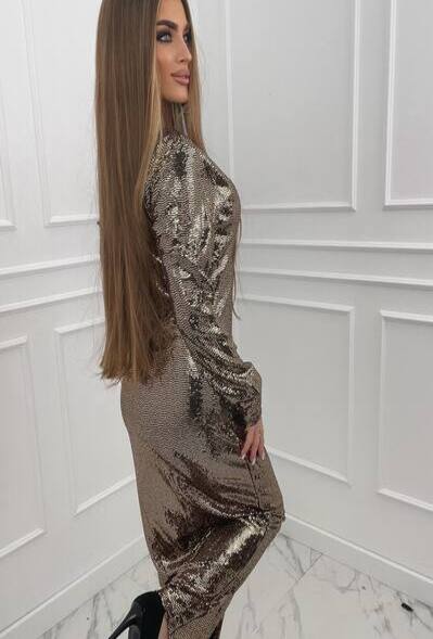 SUKIENKA MAXI PARIS CEKINY CIEMNE ZŁOTO